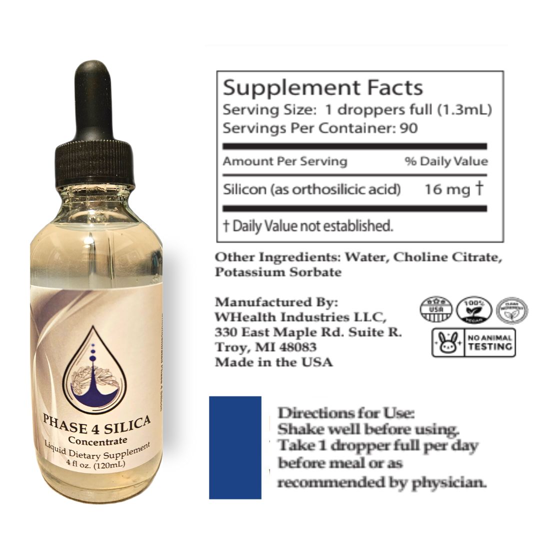 - MAXIMUM BIOAVAILABILITY: The liquid silica formula in Phase 4 Silica offers the highest bioavailability on the market with a rapid absorption rate. By increasing the bioavailable silica in our system, Phase 4 Silica stimulates the formation and regeneration of key tissues within the body like collagen and elastin which affect the health of almost all systems in the body.