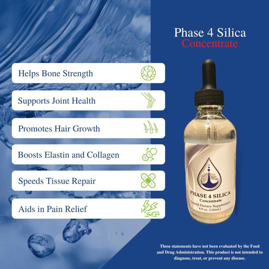 - TOTAL BODY SUPPORT: Phase 4 Silica Plasma Supplement is a liquid silica based supplement designed to deliver the vital macro-nutrient silica in a rapidly absorbable formula for your body’s use in joint, bone, muscle, deep tissue, and immune support. With an Olympian grade patented formula Phase 4 Silica promotes Whole Body Health and Wellness through boosting your body’s natural processes.